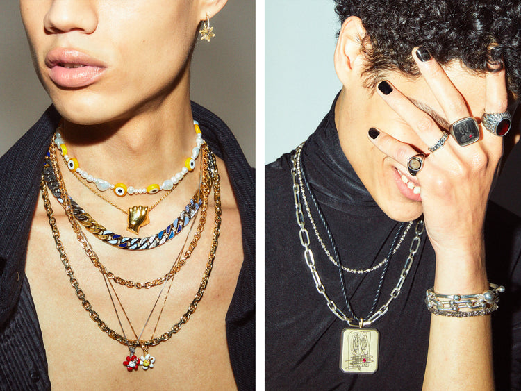 Finish him off! Nothing like a finishing touch- from rings to arm candy and necklaces.