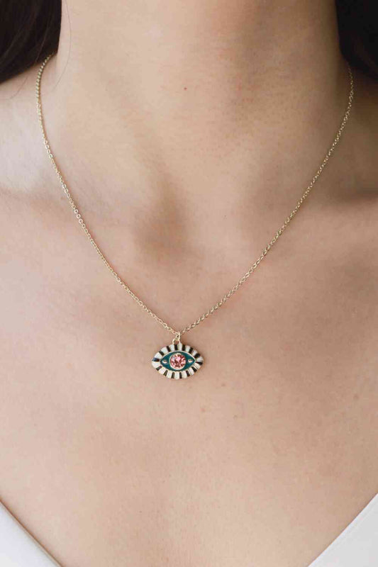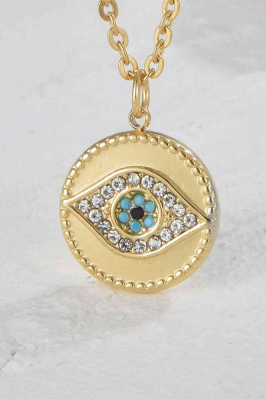 Evil Eye Pendant Pearl Stainless Steel Necklace