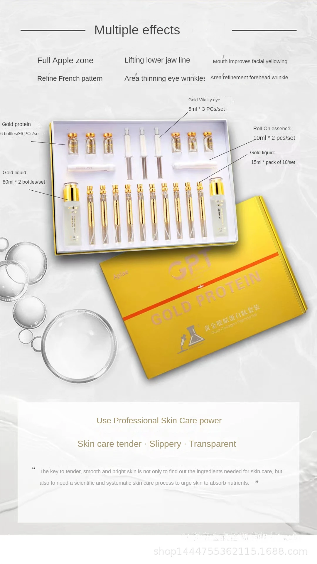 The fine and pure 24K pure gold particles can penetrate deep into the bottom layer of the skin, activate the production of collagen, and improve skin elasticity and firmness.