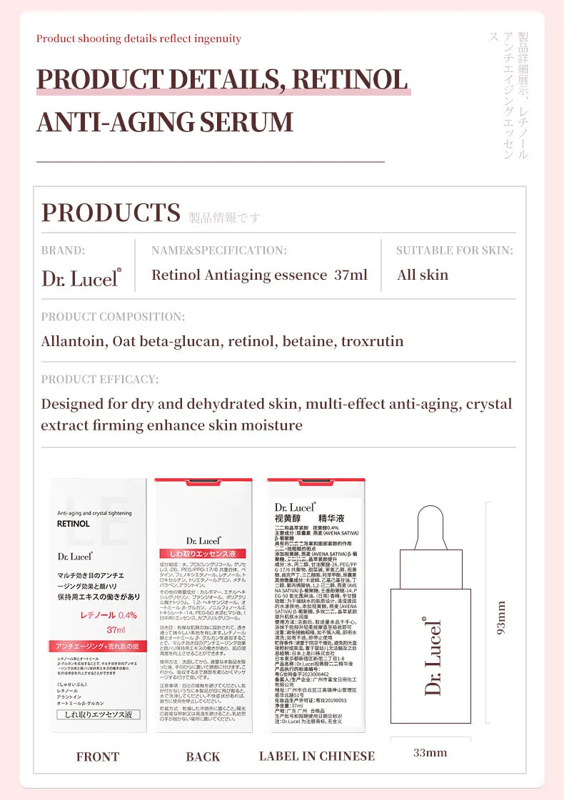 2PCS Dr.Lucel Retinol Face Serum Moisturizing Whitening Firming Fade Fine Lines Anti-wrinkle Anti-aging Deep Care Essence 37ML