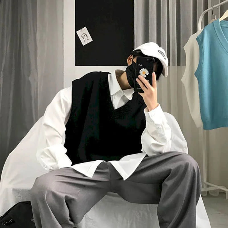 sleeveless sweater: korean style v-neck sleeveless sweater