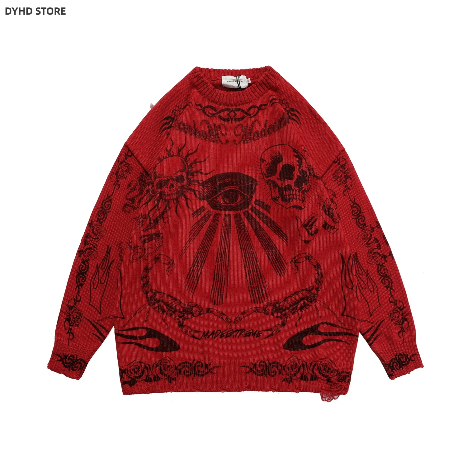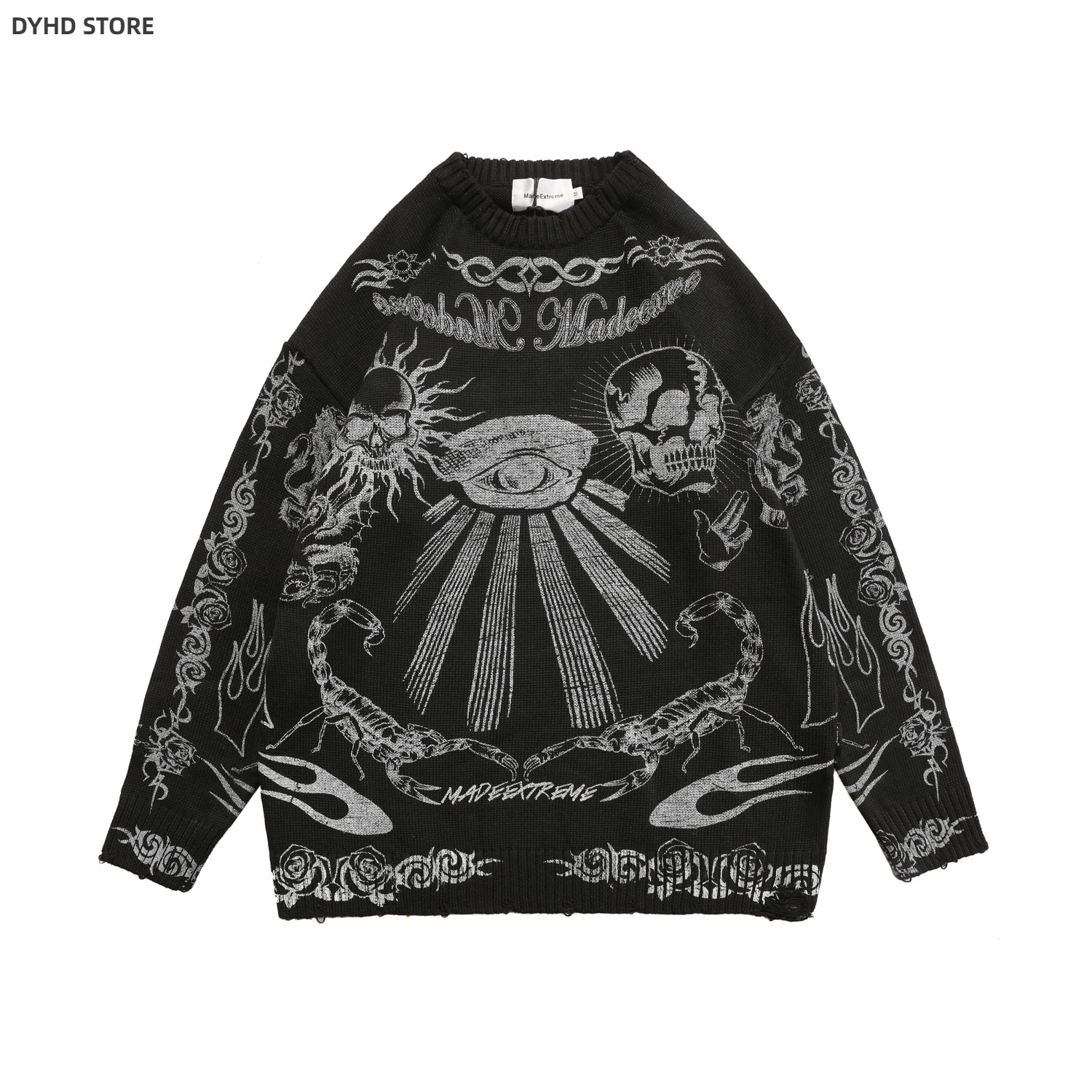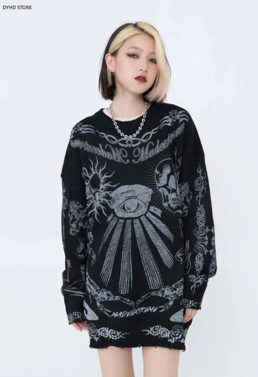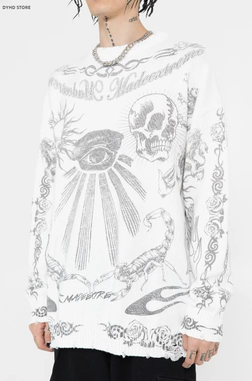 Oversized Sweater Men Women Harajuku Skull Graffiti Retro Vintage Knitted Sweater