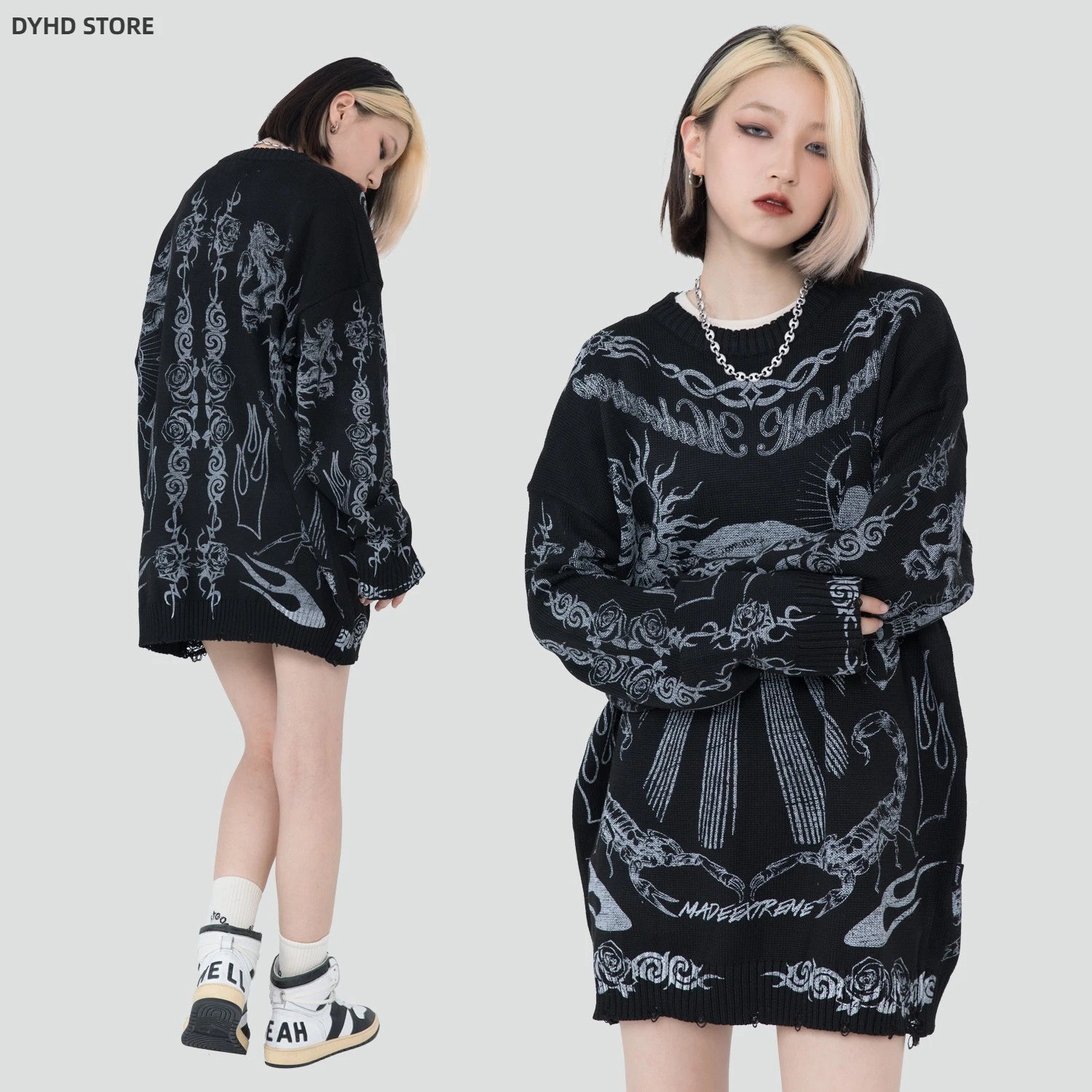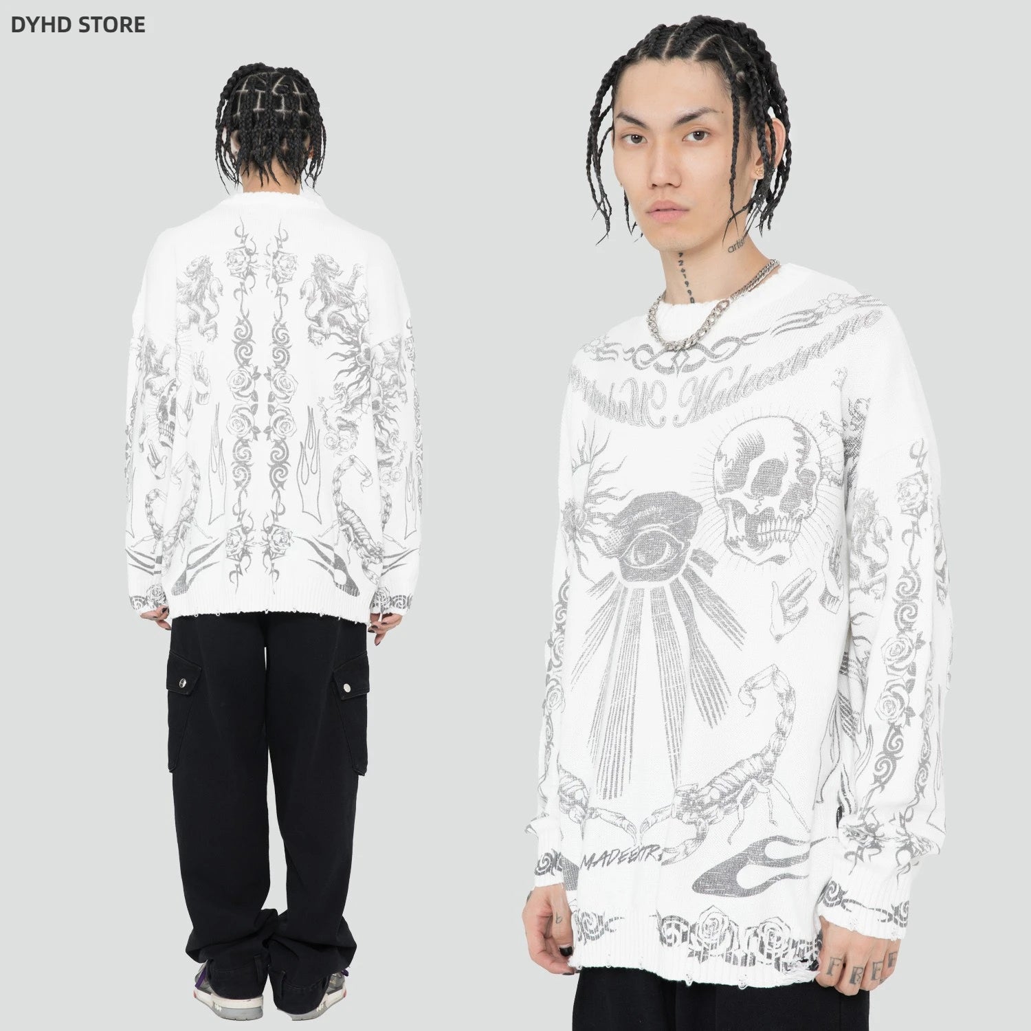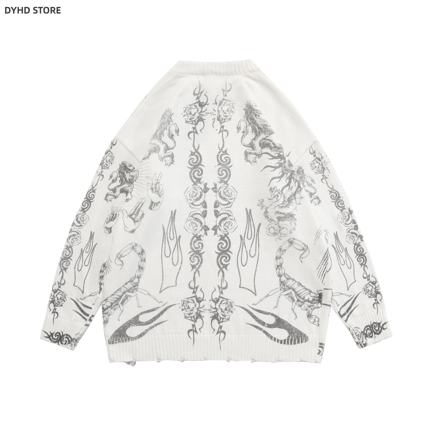 Oversized Sweater Men Women Harajuku Skull Graffiti Retro Vintage Knitted Sweater