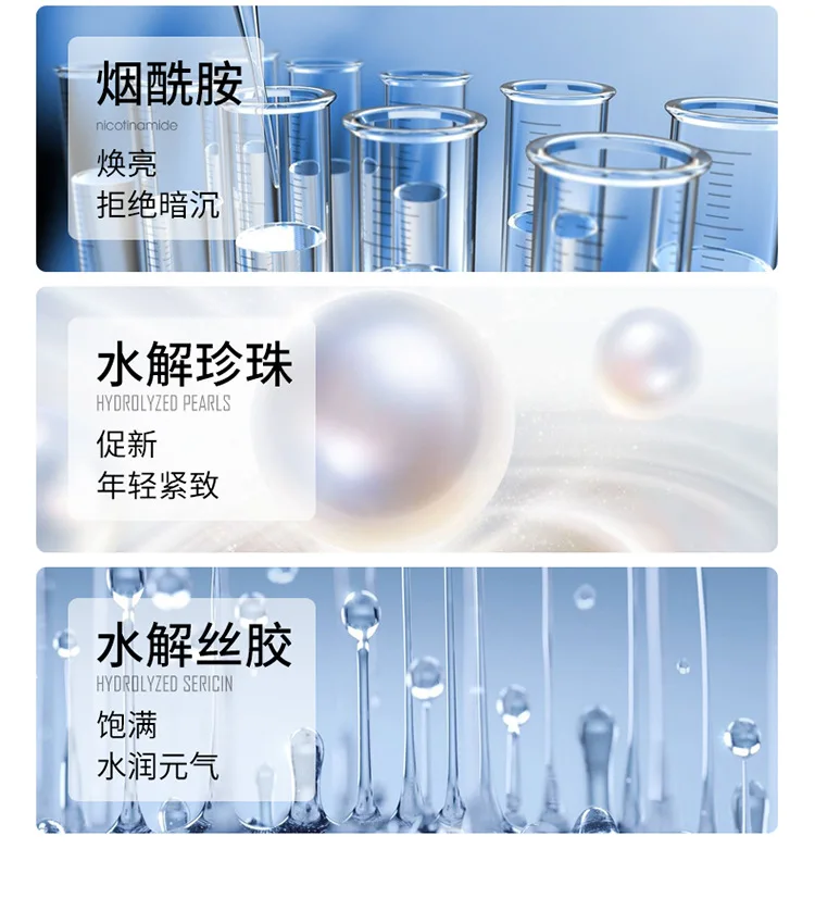 Ingredients: hyaluronic acid, austenitic seaweed, niacinamide, hydrolyzed pearl, hydrolyzed sericin